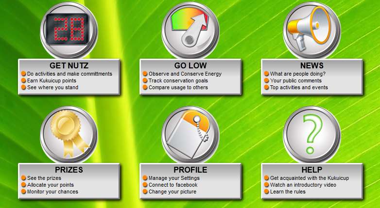 Kukuicup, an energy conservation project at the University of Hawaii at Manoa. The mobile version of the site sported a series of list-like menus (similar to the Yelp application), but user comments at the end of the competition said the mobile site was too different from the desktop site, and therefore confusing.